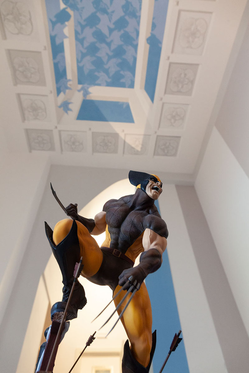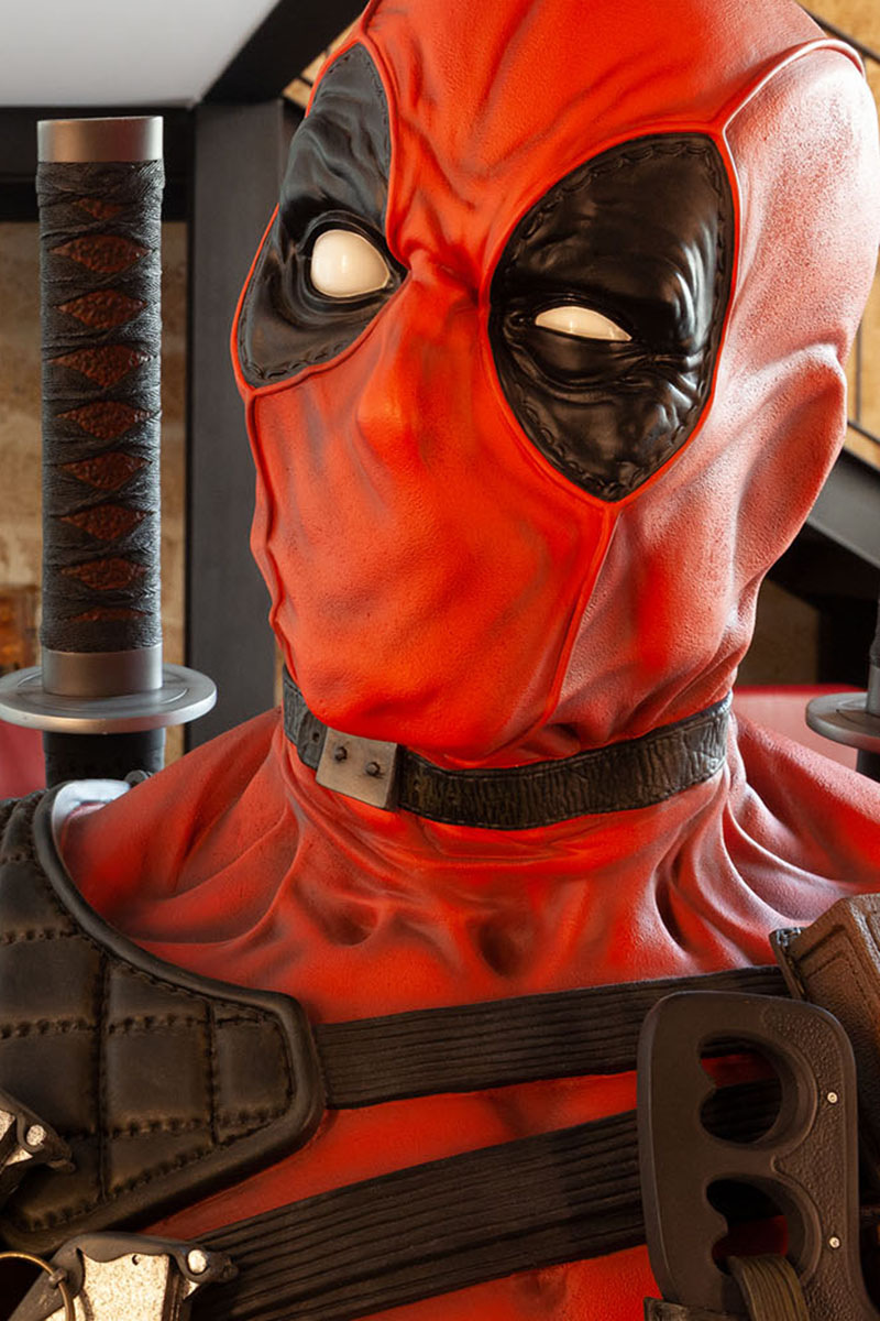 In reception c’è il mezzobusto di Deadpool il personaggio più folle e irriverente della Marvel Comics, l’antieroe per eccellenza con il cappuccio rosso che ne nasconde la faccia distrutta dal fuoco. E ancora Doctor Doom, il Dottor Destino, il cattivone dei Fantastici Quattro; Wolverine il più rappresentativo degli X-Men, un mutante con gli artigli. E poi i personaggi della Trilogia I Signori degli Anelli, le Tartarughe Ninja, Harry Potter e tantissimo altro.
