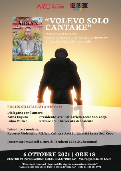 Mercoledì 6 ottobre Ibrahem Zada Muhammad sarà a Lecce, ospite di Arci Solidarietà Lecce Cooperativa Sociale.