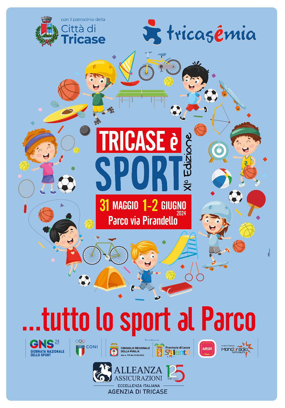 Tricase è Sport, evento promosso dall’associazione Tricasèmia, nasce con l’intento di convogliare tutte le discipline sportive in una grande festa, praticate dalle diverse associazioni sportive del territorio, in una grande festa di piazza per famiglie e bambini.