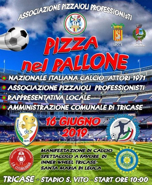 Domenica 16 giugno dalle ore 10 si svolgerà presso lo stadio di via Olimpica Pizza nel Pallone, manifestazione di calcio e di beneficenza il cui ricavato sarà devoluto all’associazione Inner Wheel Club Tricase-S.M-di Leuca.