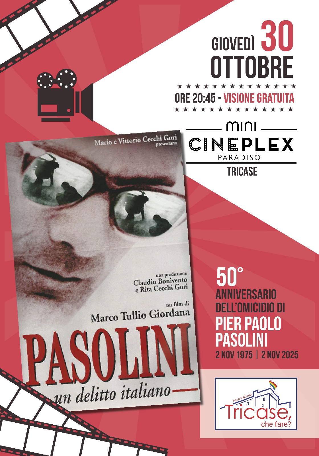A Tricase l’Associazione “Tricase, che fare?” propone una serata in occasione dell’imminente 50esimo anniversario dalla tragica morte di Pier Paolo Pasolini.