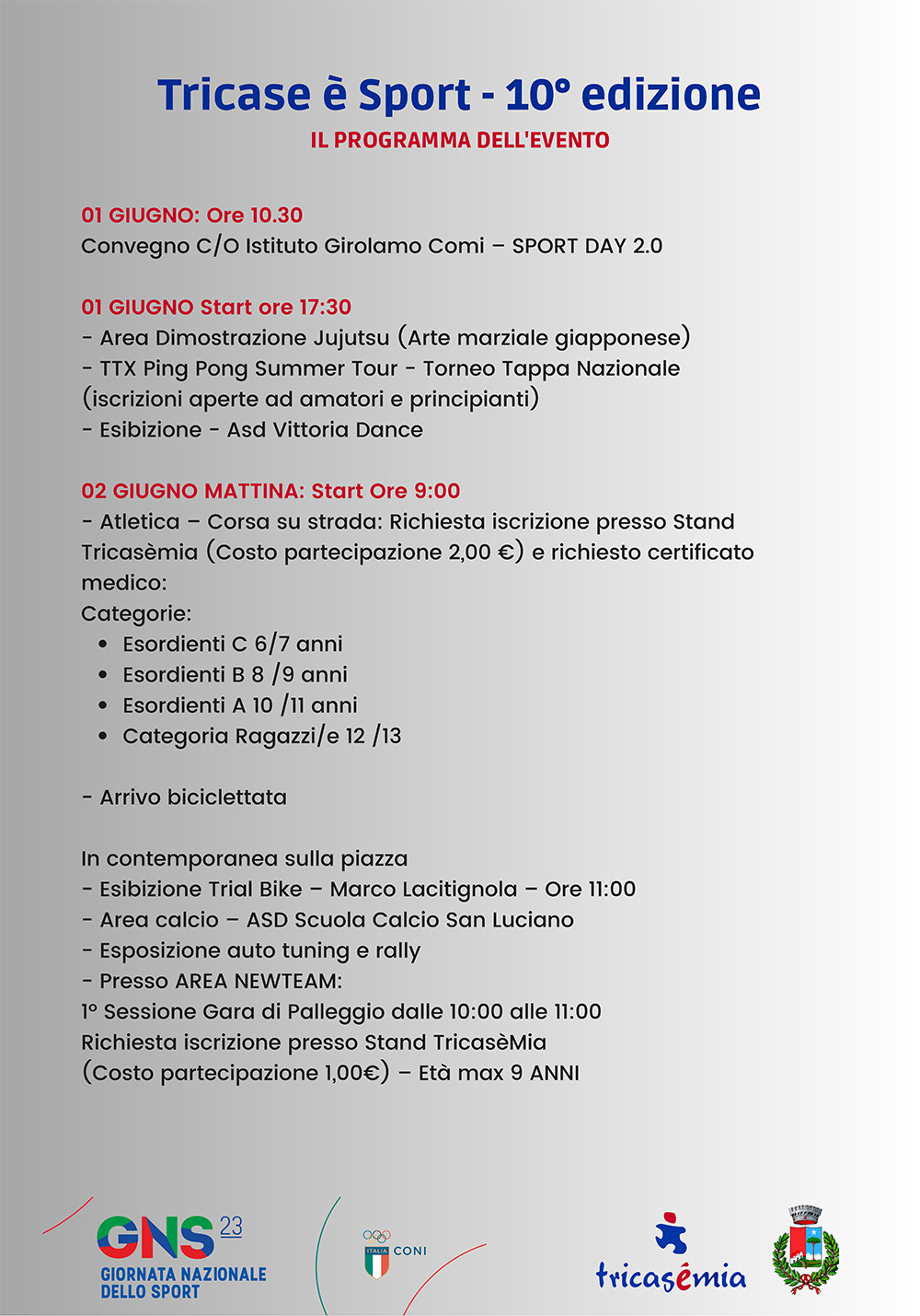 Il progetto “Tricase è Sport” culmina ogni anno nei giorni 1 e 2 giugno.