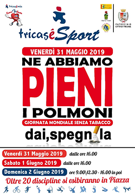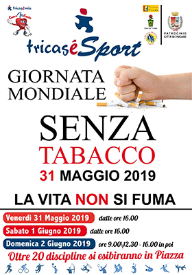 La vita non si fuma!” e “Ne abbiamo pieni i polmoni, dai spegnila!” sono gli slogan con cui Tricasèsport, iniziativa dell’associazione Tricasèmia, vuole dare il suo contributo alla giornata mondiale senza tabacco.
