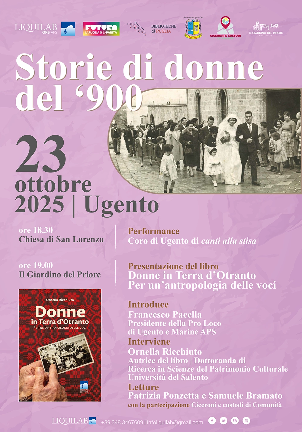 Giovedì 23 ottobre, a Ugento, quelle voci torneranno a risuonare con “Storie di donne del ’900”, un progetto dedicato alla memoria, al canto e alla dignità femminile del Mezzogiorno.