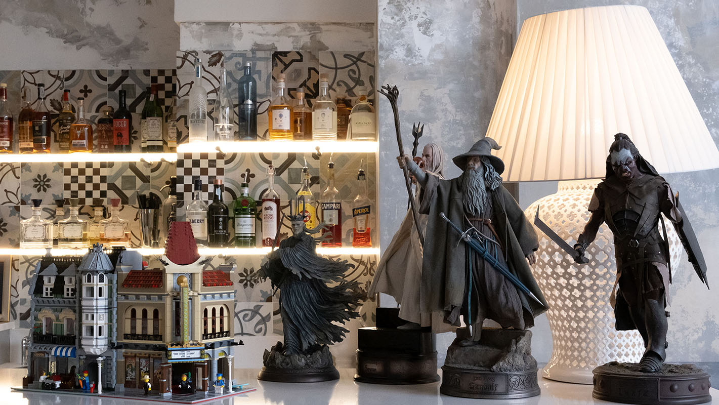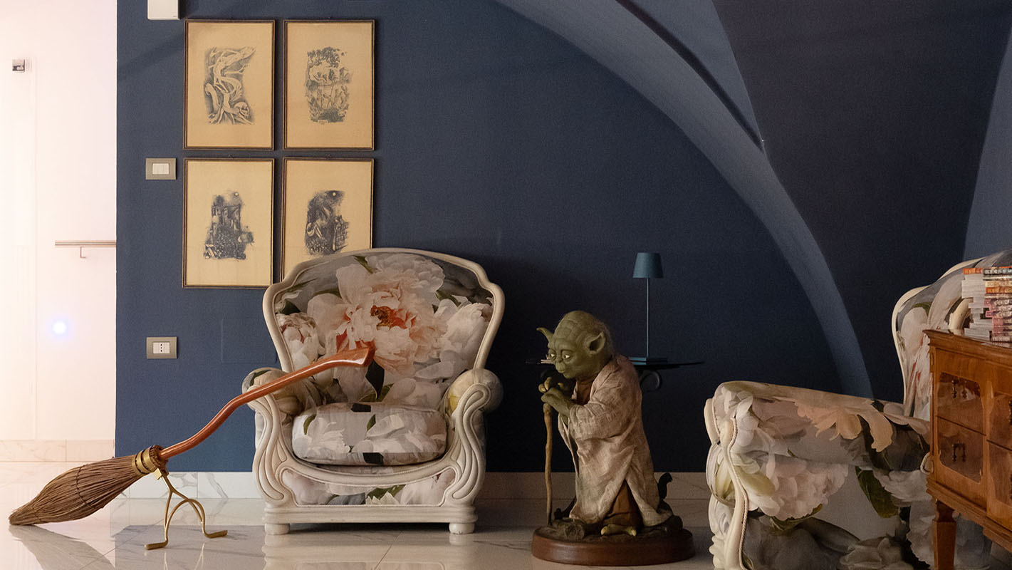Frutto di un’enorme passione e tanto lavoro, la collezione vanta pezzi unici come il costume di Batman indossato da Christian Bale nel film Il Cavaliere Oscuro battuto a un’asta benefica in California; i personaggi di JoJo creati dalla matita di Toyotarō, mangaka giapponese che ha lavorato anche con Gucci, la scopa Nimbus 2000 direttamente dalle scene di Harry Potter, il maestro Yoda della saga di Star Wars, in scala 1:1 come nella rappresentazione cinematografica degli anni ’80 e lo Squalo, il bozzetto originale in resina apparso nel finale dell’omonimo film del 1975 diretto da Steven Spielberg e da lui autografato durante un evento a Los Angeles, che celebrava i venti anni dall’uscita del capolavoro cinematografico.