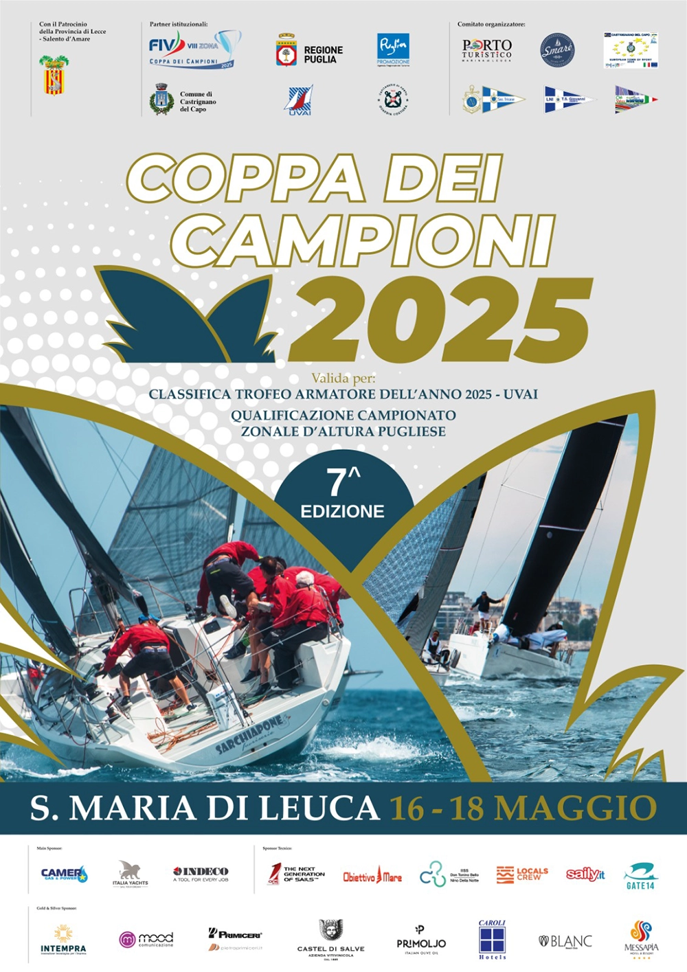 Alberto Lategola, presidente della VIII Zona FIV, ha rimarcato il valore della manifestazione come volano di promozione territoriale: «Nata otto anni fa per valorizzare la Puglia e i suoi migliori circoli velici, oggi la Coppa dei Campioni rappresenta una vetrina straordinaria. Santa Maria di Leuca, incastonata tra Punta Meliso e Punta Ristola, dove l’Adriatico e lo Ionio si uniscono, è una cornice ideale per accogliere la regata, con il suo patrimonio artistico, architettonico e naturalistico».
