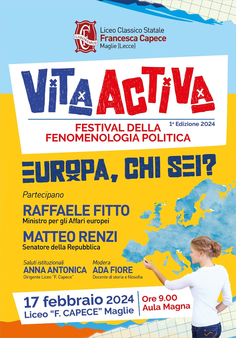 Al Liceo “Capece”. Per la prima volta, in una scuola, un Festival di politica che parla ai giovani. Sabato 17 febbraio primo appuntamento con il ministro Raffaele Fitto ed il senatore Matteo Renzi