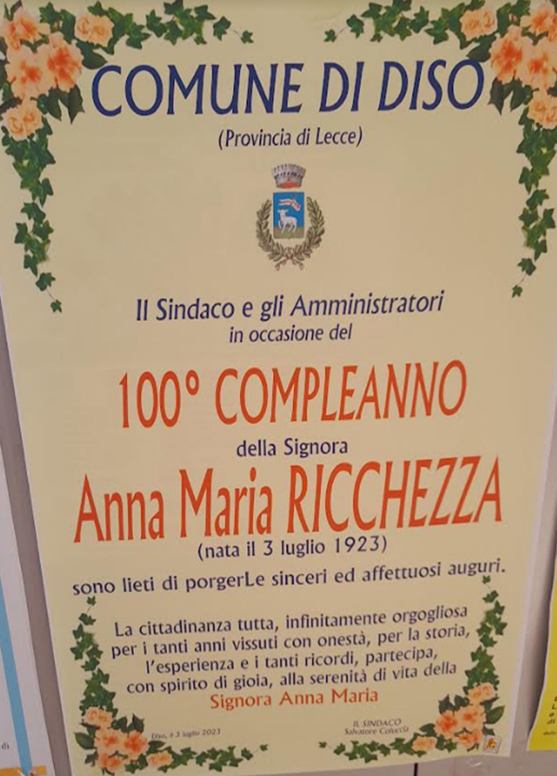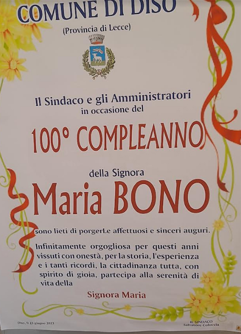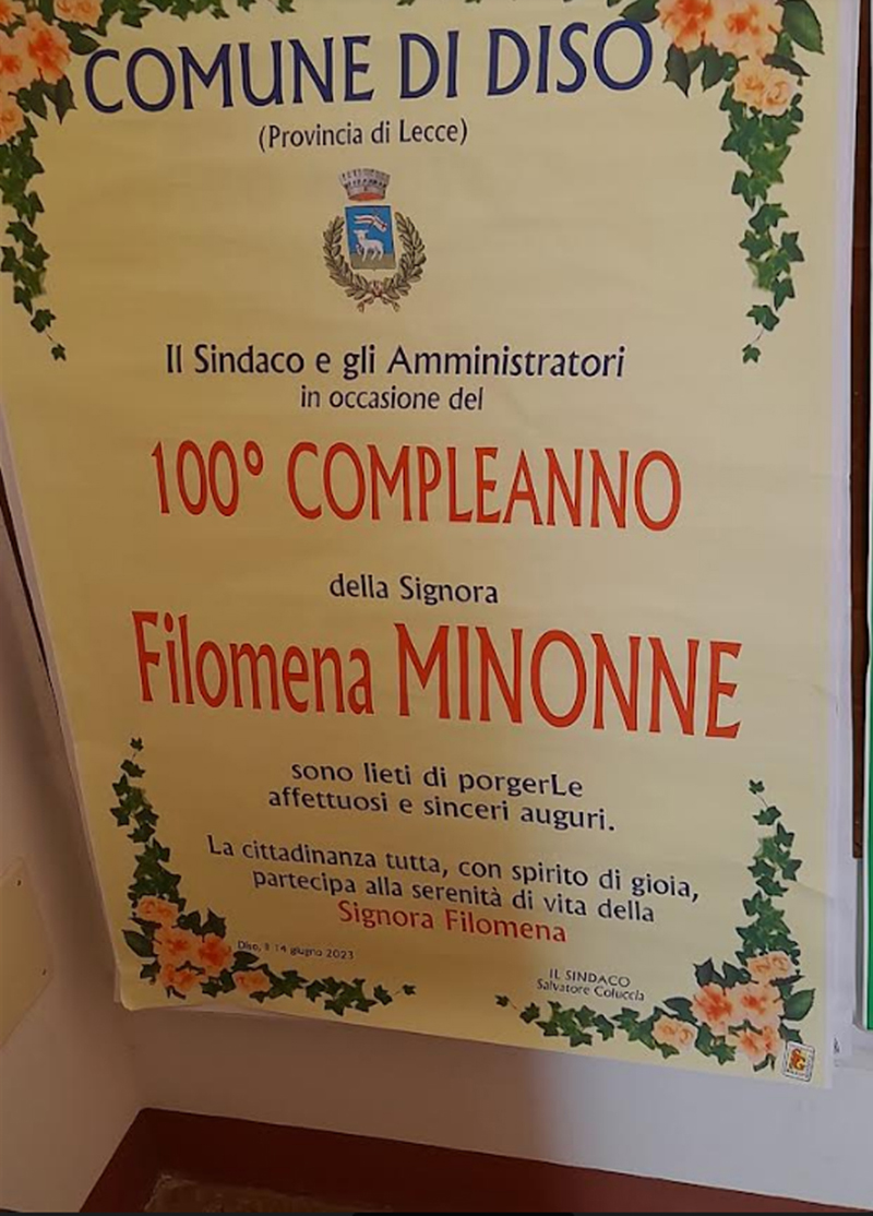 Su una popolazione di 2.818 residenti, fra giugno appena passato e luglio in corso, le tre compaesane Filomena Minonne, Maria Bono e Anna Maria Ricchezza, tutte donne, come dicevamo, hanno raggiunto il traguardo del secolo di vita, festeggiando il loro centesimo compleanno.
