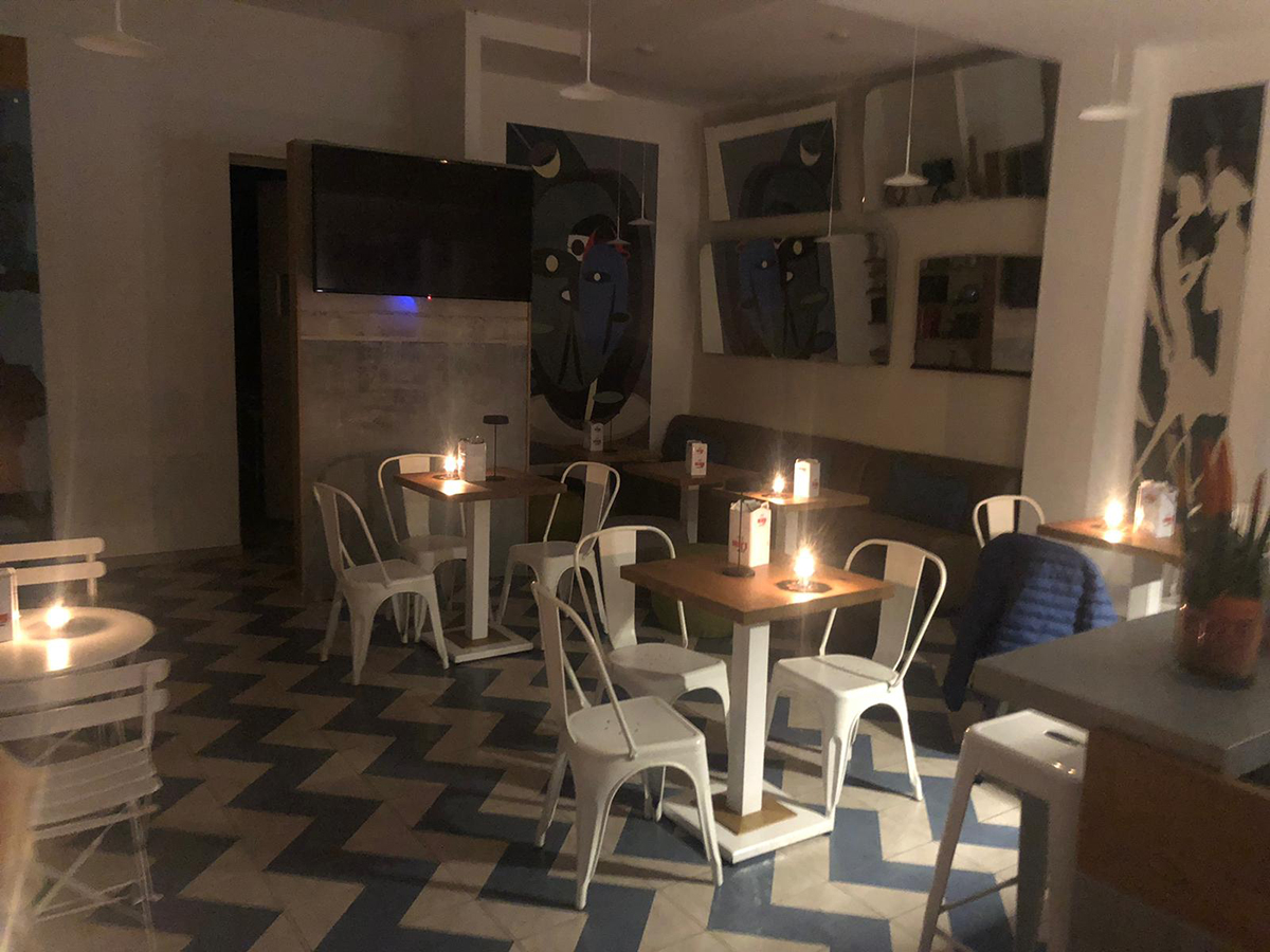 Per questo motivo Tommaso Lezzi, Simona Della Villa e Damiano Merico che gestiscono l’esercizio, hanno deciso di comunicare il loro disagio spegnendo le luci e «illuminando il locale solo con candele e luci alimentate a batteria pur assicurando il servizio alla clientela, mantenendo cioè attive macchina del caffè, frigo e forno».