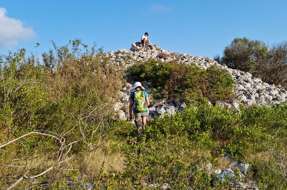 Si camminerà per 5 chilometri e mezzo su un dislivello di circa 65 metri su per la collina ricoperta di macchia mediterranea, che profuma di erbe mediterranee: rosmarino, mirto e lentisco.