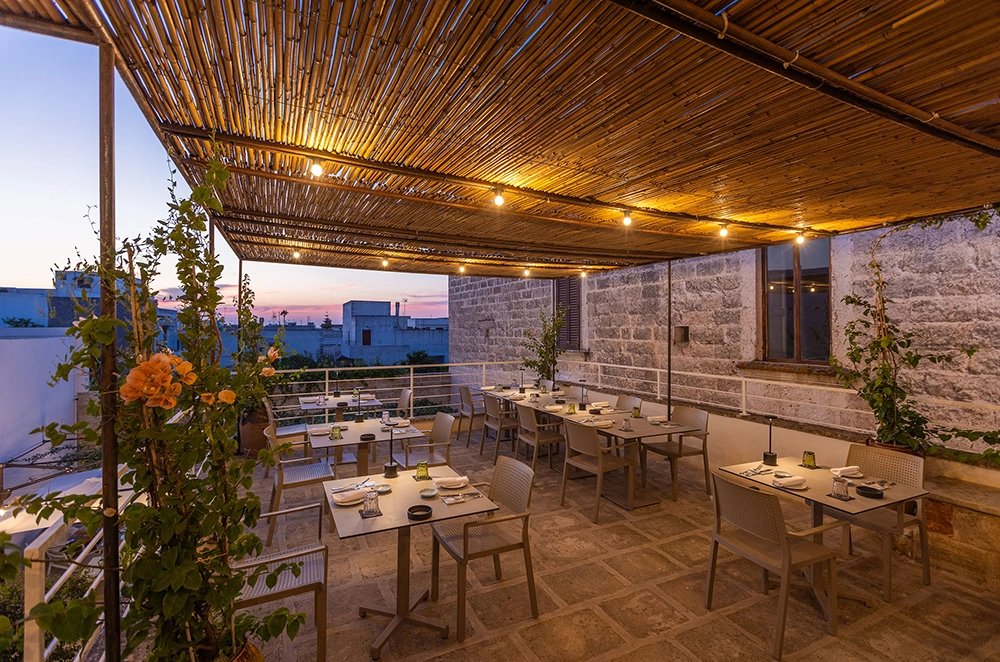 Un luogo suggestivo, che mescola storia, artigianato, design e l’ottima cucina tradizionale, ma non convenzionale dello chef Eugenio Pindinello, con prodotti del territorio, tecniche di cucina moderna e impronta fusion: ottima la pasta mischiata, così come la salsa di polpo in pignata, spuma di patate alla soia (leggermente affumicata) e polvere di olive nere.