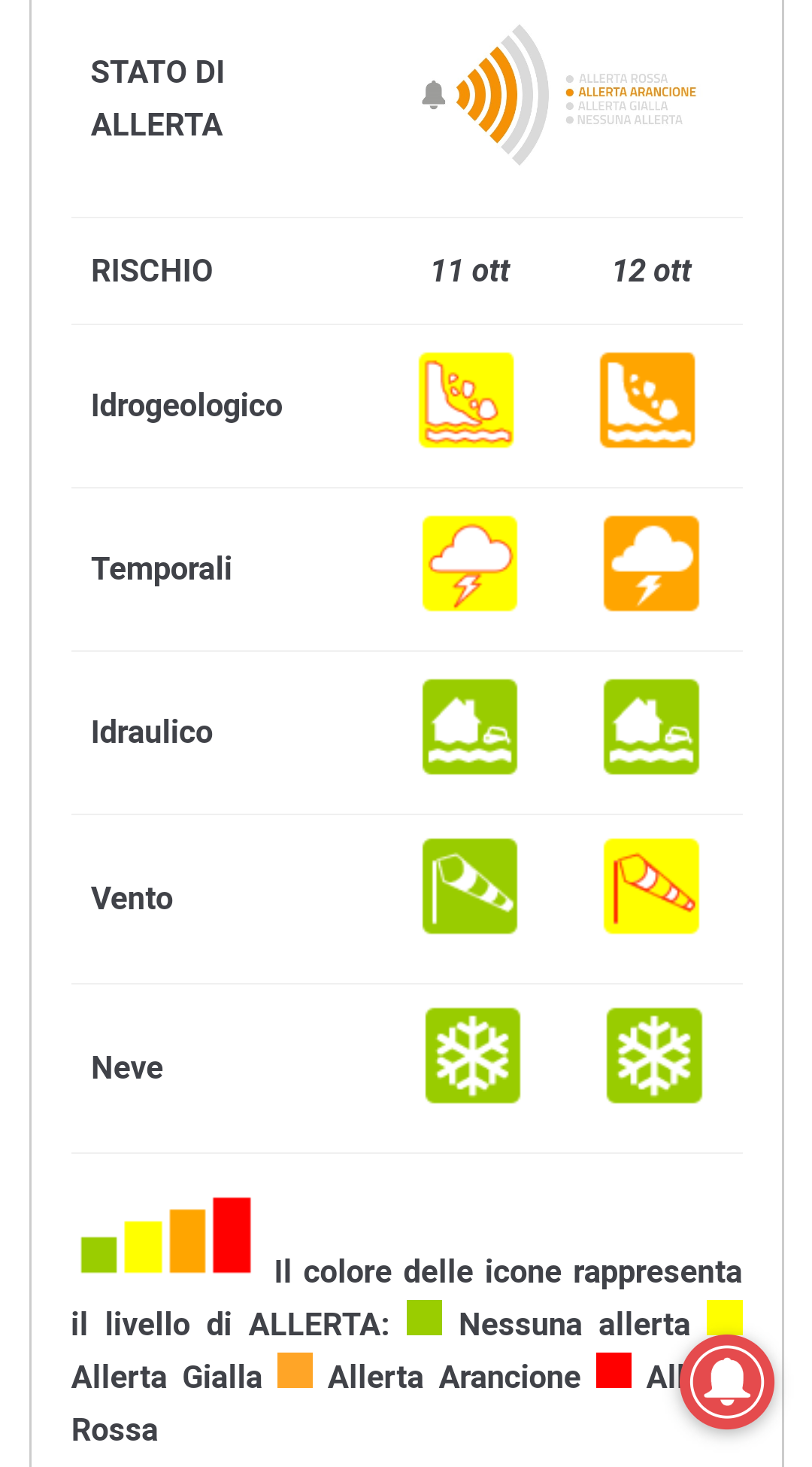 Moderato rischio ideogeologico. Per il vento invece allerta gialla