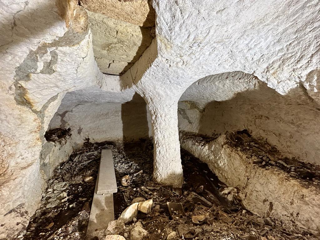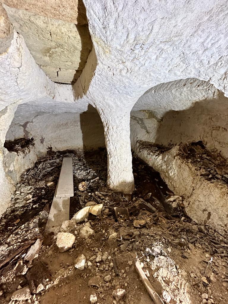 E poi ancora un’altra scoperta. Il nuovo volto, emerso di metro in metro, ha fatto maturare negli addetti ai lavori la convinzione che la chiesa potesse celare altro. Il georadar ha fatto il resto, segnalando un vuoto accanto alla cripta, sotto al pavimento della chiesa, proprio nel suo punto centrale. Gli scavi hanno fatto luce su un’altra cavità, non comunicante con la precedente, e dalle evidenti finalità funebri. Si tratta di una seconda cripta, un ambiente cui si accedeva da una botola, senza una scala. Evidenti le sue finalità, di natura funebre: al suo interno ossa, del legno (presumibilmente resto di antiche bare), degli abiti (con cui chi riposa qui era stato sepolto). Il soffitto di questa cavità, poi, corrispondente con la base su cui poggia l’attuale pavimento (realizzato a metà del secolo scorso sopra al precedente) porta traccia di altre sepolture, tombe scavate nella roccia.