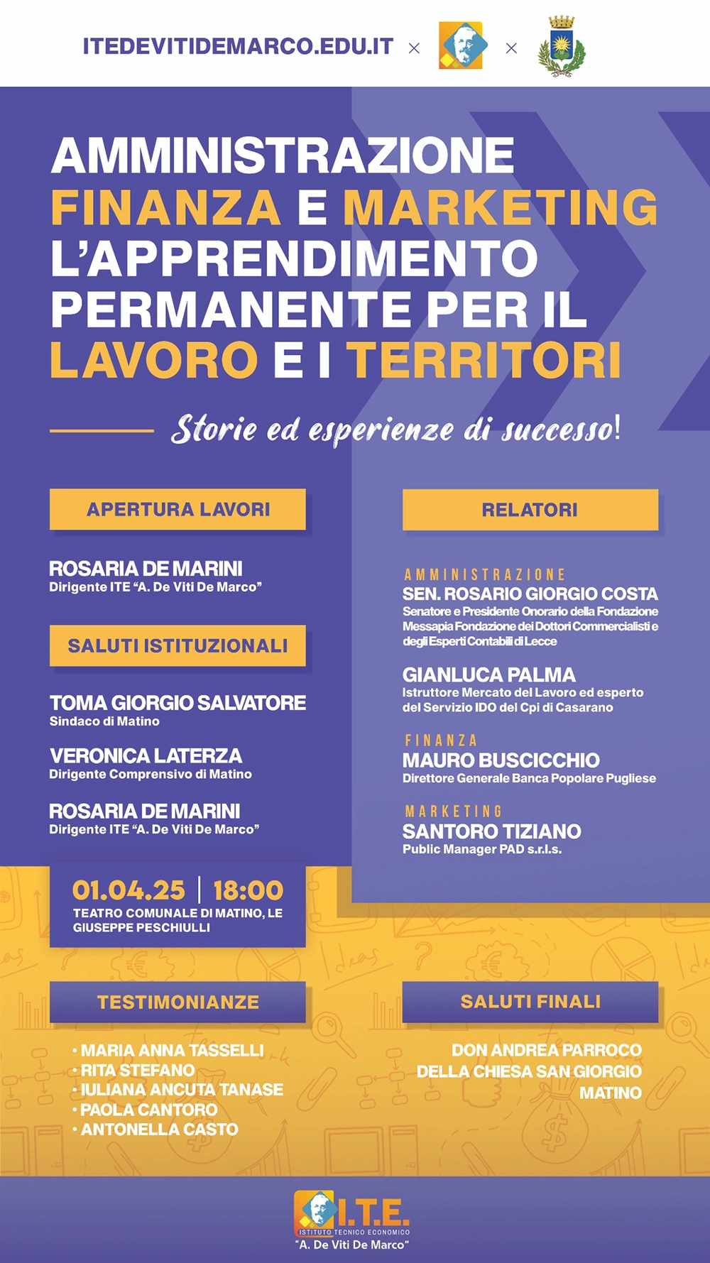 È l’I.T.E. A. De Viti De Marco di Casarano a catalizzare l’interesse del territorio per il modello di apprendimento applicato nel Corso di Istruzione per Adulti (ex Serale) in Amministrazione Finanza e Marketing.