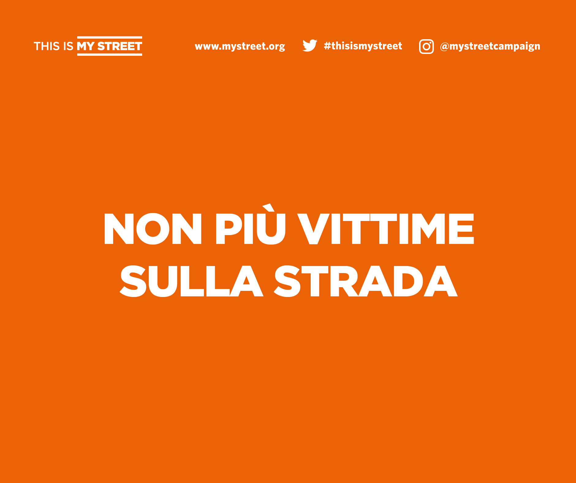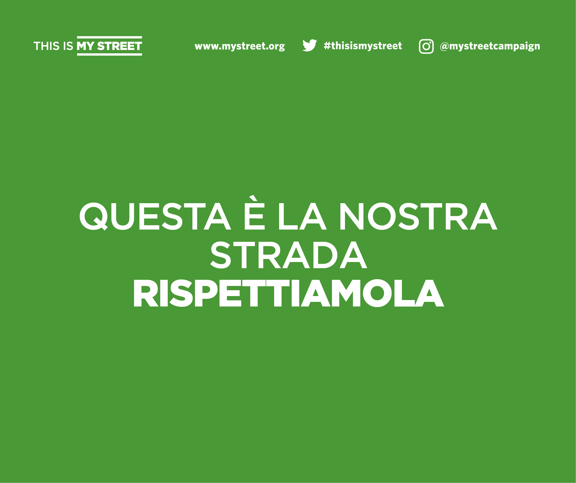 I partecipanti a “This is my Street” condivideranno sui propri canali social con l’ashtag #ThisismyStreet cartelli dove sono riportate alcune frasi sulla sicurezza stradale, indirizzate alle Istituzioni ed alla collettività, per promuovere l’adozione di efficaci azioni d’intervento.