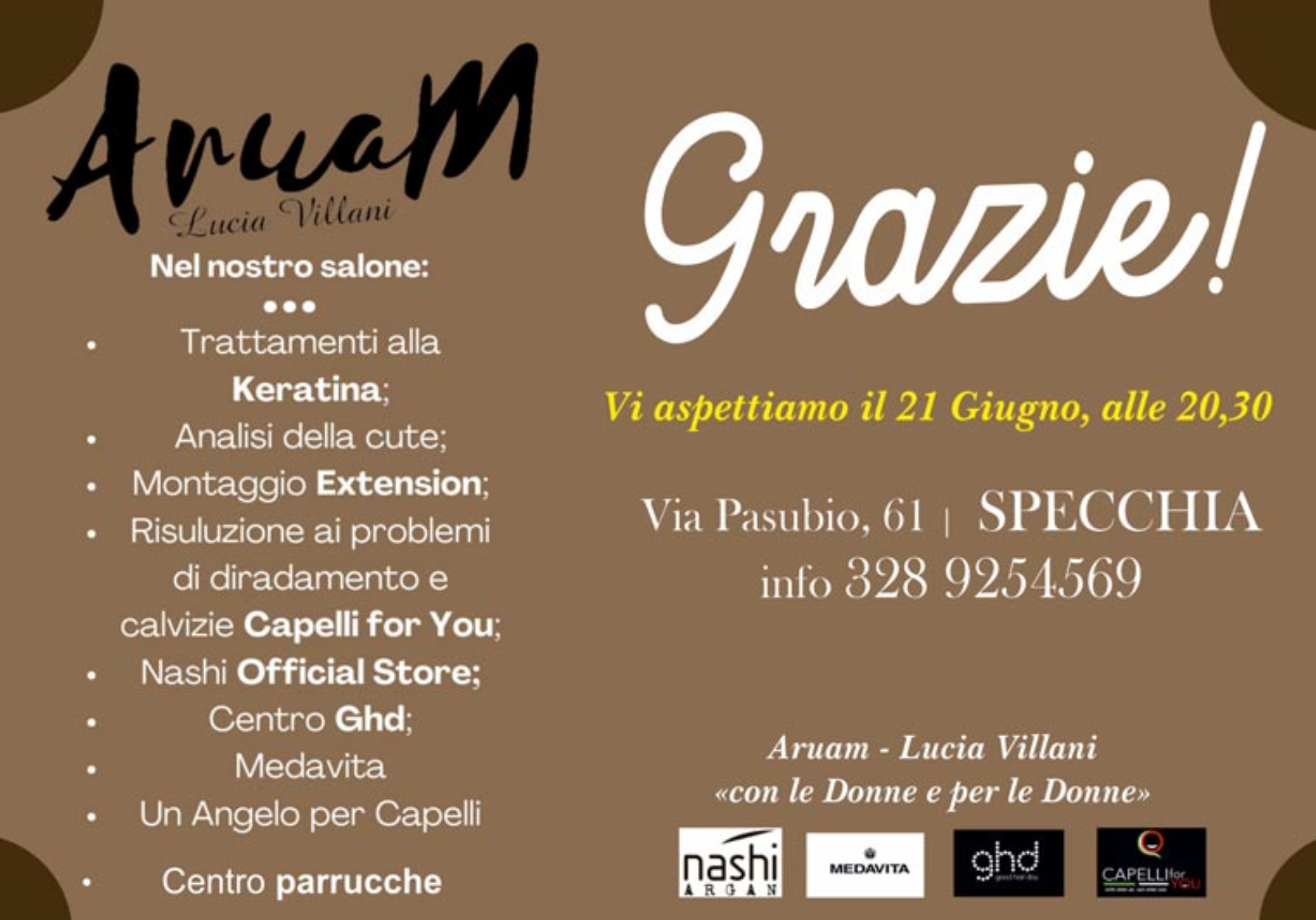 Un pensiero speciale va anche ai nostri brand partner, che ci accompagnano con fiducia e qualità: Nashi; Medavita; Capelli For You; Un Angelo per i Capelli; GHD.