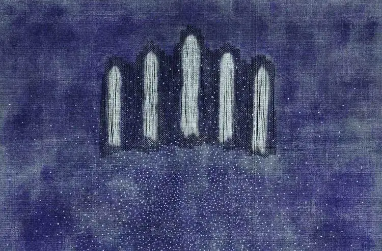 Le Cattedrali sono identificabili attraverso le forme costituite dai fili verticali svettanti verso il cielo nella ricerca di avvicinarsi al Divino.