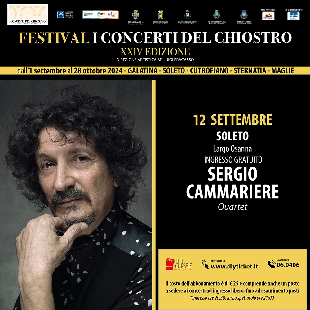 Giovedì 12 settembre, sempre a Soleto, Sergio Cammariere affiancato dalla sua storica band, un team di grandi musicisti che da sempre sono al suo fianco, Daniele Tittarelli, Luca Bulgarelli, Amedeo Ariano, con cui ripercorrerà la sua carriera, partendo dai suoi successi fino ad arrivare brani del suo nuovo disco dal titolo “Una sola giornata” (ingresso gratuito).