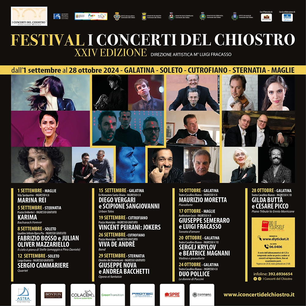 È organizzata dall’Associazione Musicale I Concerti del Chiostro, con il contributo e il patrocinio di Città di Galatina, Comune di Soleto, Comune di Cutrofiano, Comune di Sternatia e Città di Maglie, con il patrocinio del Conservatorio di Musica “Tito Schipa” di Lecce e in collaborazione con il Club Unesco di Galatina e della Grecìa Salentina.