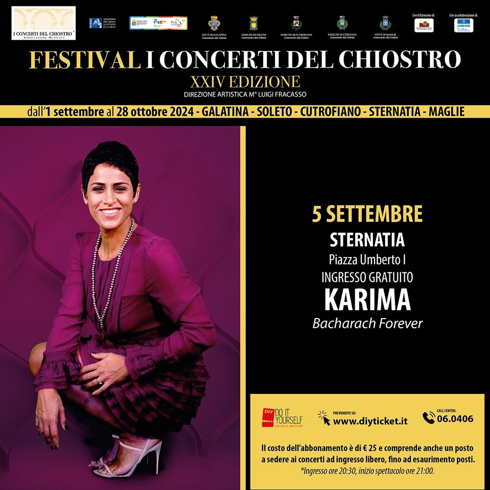 La scena si accenderà per Karima con il suo “Bacharach Forever” dedicato a uno dei più grandi compositori pop di sempre (ore 21, piazza Umberto I, ingresso gratuito).