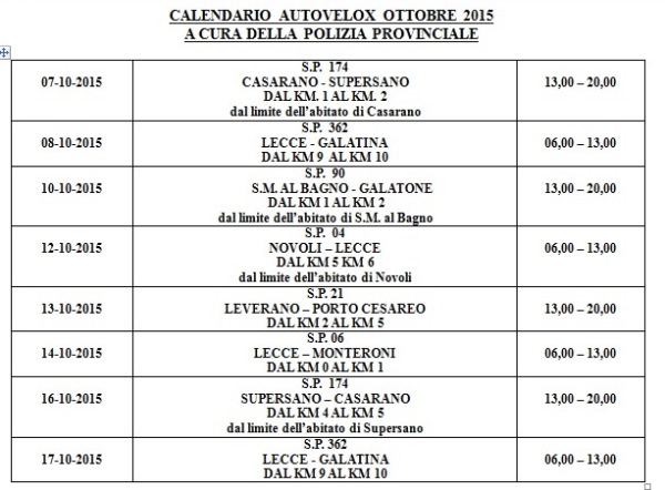 Controlli stradali: autovelox e telelaser di ottobre