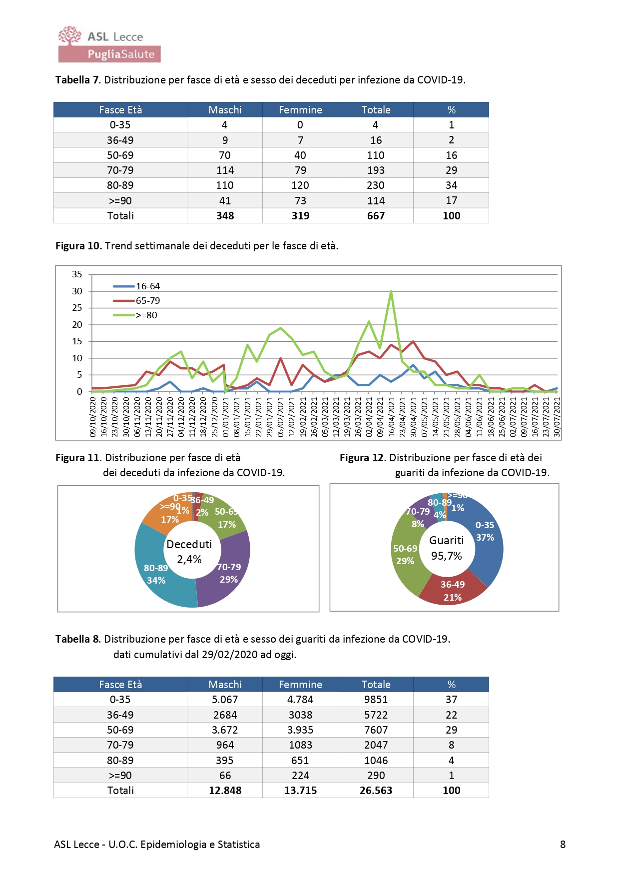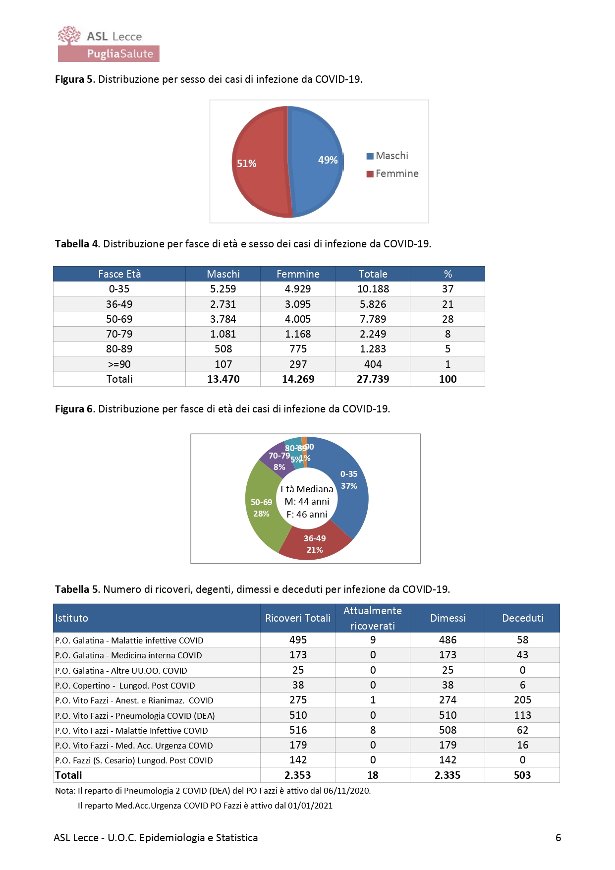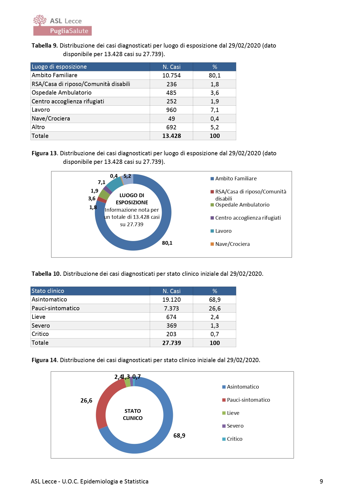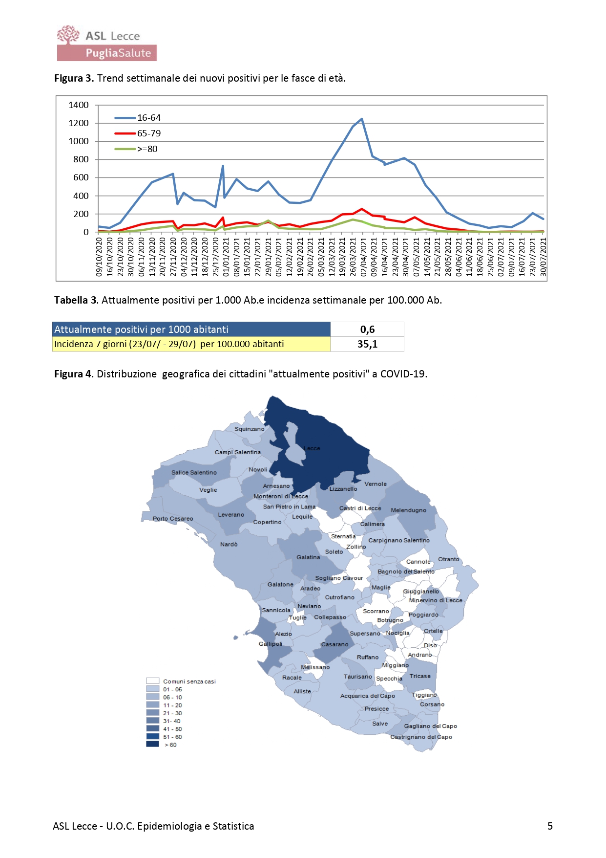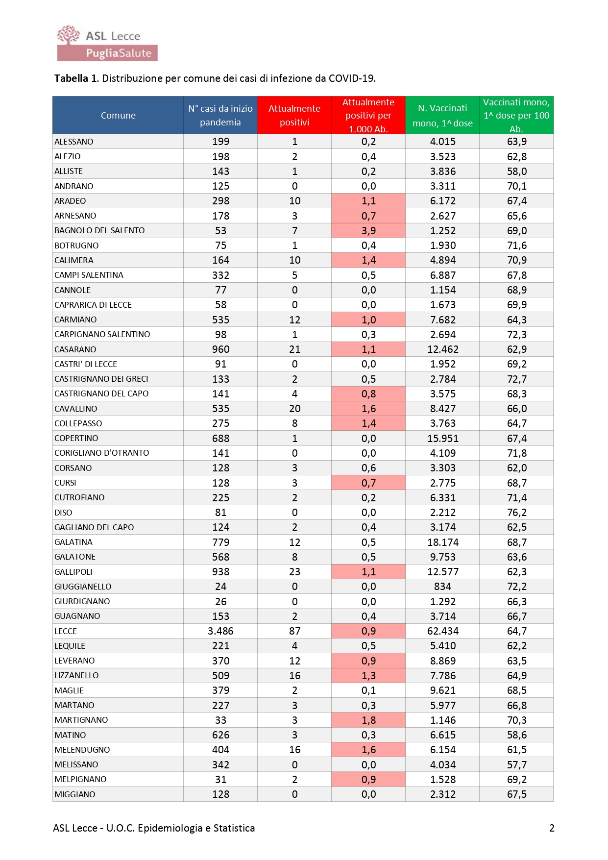 Il Dott. Fabrizio Quarta, Direttore U.O.C. Epidemiologia e Statistica ASL Lecce, riporta i seguenti dati: