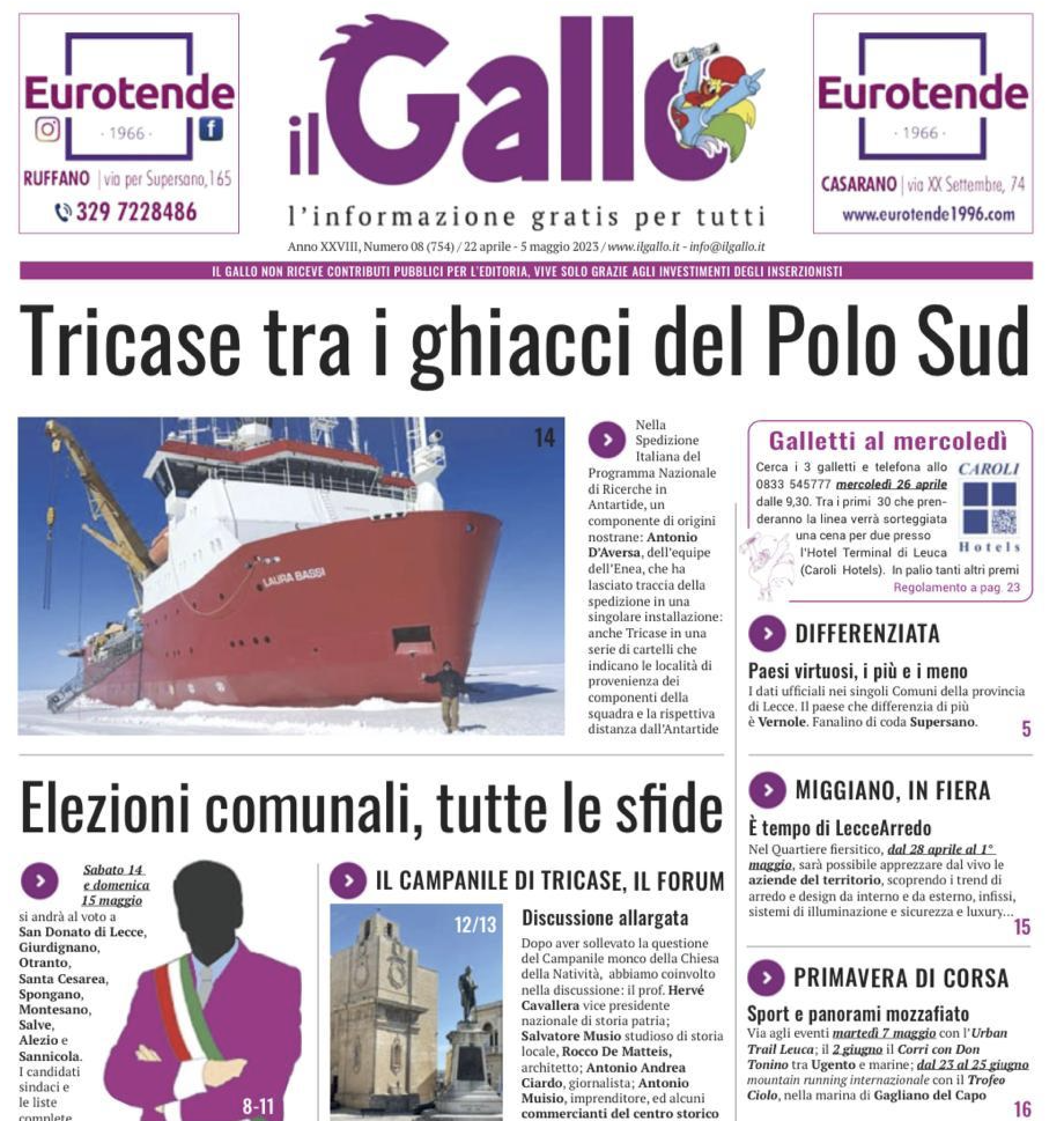 Ebbene il nostro conterraneo ci riporta tra i ghiacci del polo sud, da dove segue le sorti del Salento dalle colonne de Il Gallo.