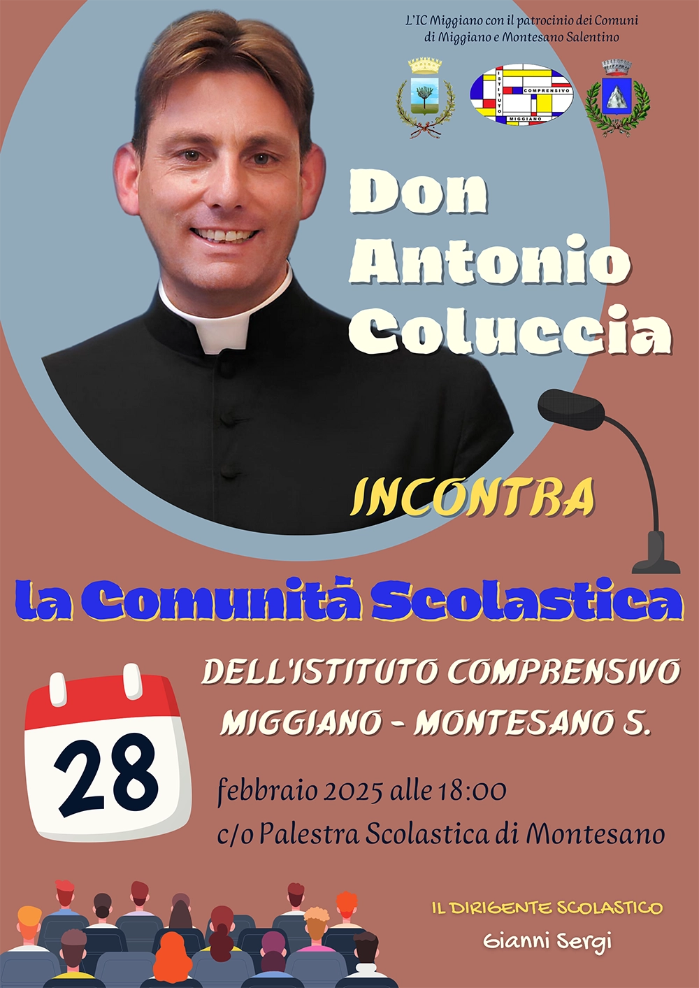 L’incontro avrà come ospite e oratore il prete antimafia originario di Specchia, don Antonio Coluccia, e si terrà venerdì 28 febbraio, alle ore 18, presso la palestra del plesso di Montesano.