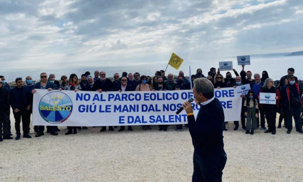 Paolo Pagliaro, consigliere regionale e fondatore di Regione Salento, annuncia: «Di nuovo uniti dall’unica bandiera della difesa del paesaggio dall’assalto sregolato dell’eolico offshore. Ci ritroveremo a Porto Miggiano, luogo simbolo della nostra protesta, dove abbiamo già manifestato il 21 novembre 2021 e il 1° maggio 2022, per ribadire che il nostro patrimonio di bellezza non è in vendita».