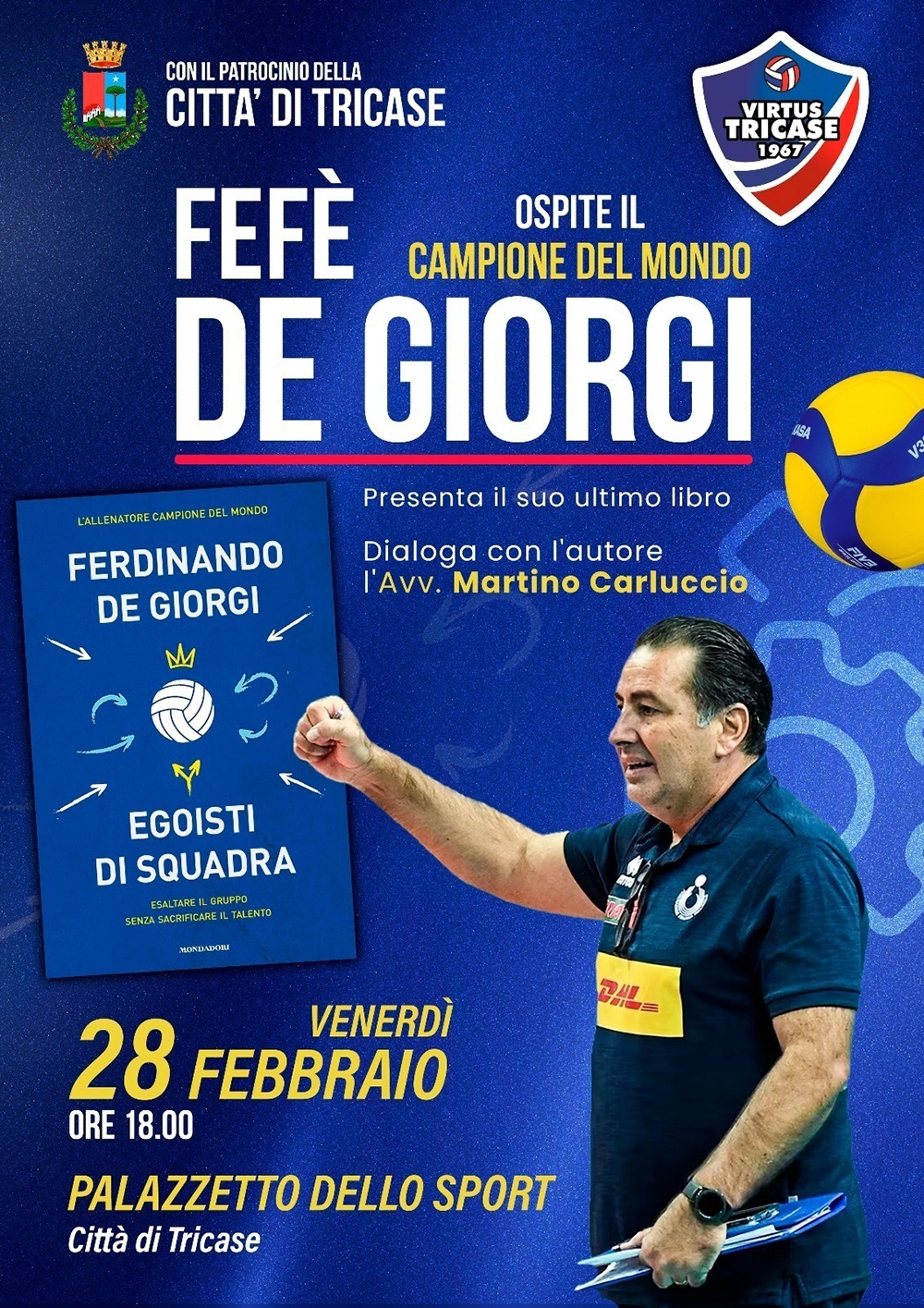 L’allenatore campione del mondo della nazionale maschile di volley, Ferdinando De Giorgi, è ospite della Virtus Tricase 1967 in un evento unico, patrocinato dalla Città di Tricase.
