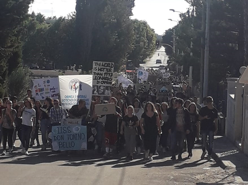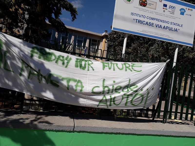 Sull’esempio dei ragazzi e dei bambini dell’Istituto comprensivo di Via Apulia di Tricase che, mentre i loro colleghi delle superiori manifestavano per il paese (molti sono anche andati a Lecce per partecipare al corteo promosso dalla sezione salentina di Friday For Future), sotto lo sguardo attento degli insegnanti, sono usciti nel cortile della loro scuola per esporre i loro striscioni e dare l’esempio. Perchè il futuro è soprattutto loro. E noi dobbiamo smetterla di comprometterglielo.