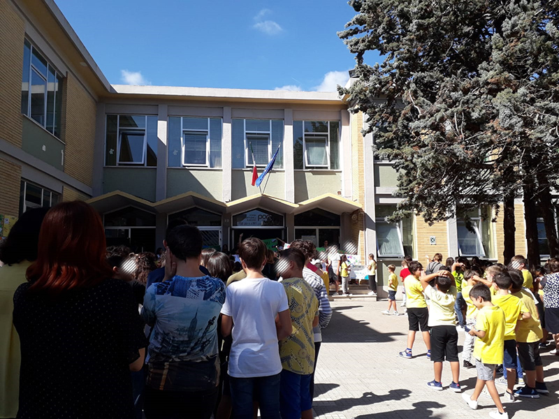 I ragazzi nel cortile della sede centrale dell’I.C. di via Apulia