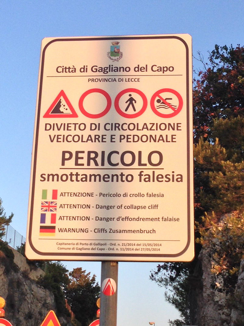 «L’altro giorno», rimarca Biasco, «è stato compiuto un altro sequestro alla caletta del “Ciolo”, la perla del Capo di Leuca, vero “Santuario” di bellezza che Madre Natura ha voluto donarci. Si aggiunge al divieto di circolazione (una storia che si ripete tristemente da 5 anni!) così vistosamente prescritto dai numerosi cartelloni stradali che ancora “addobbano” la nostra Litoranea,  proprio nel suo tratto più bello, dal Ciolo fino a Santa Maria di Leuca; si aggiunge all’interdizione alla balneazione che ormai vige da diversi anni; si aggiunge ai precedenti sequestri operati dalla Magistratura, ai progetti bloccati, ai finanziamenti andati perduti (un progetto di un milione di euro e un altro da mezzo milione). Si aggiunge alla perdurante incapacità di dare soluzione ad una situazione che, da temporanea, sembra essersi trasformata in definitiva».