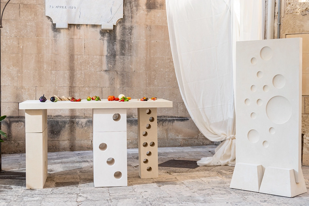 Un’installazione che intreccia cibo, stagionalità e condivisione, celebrando la sacralità del lavoro e il legame profondo con il territorio.