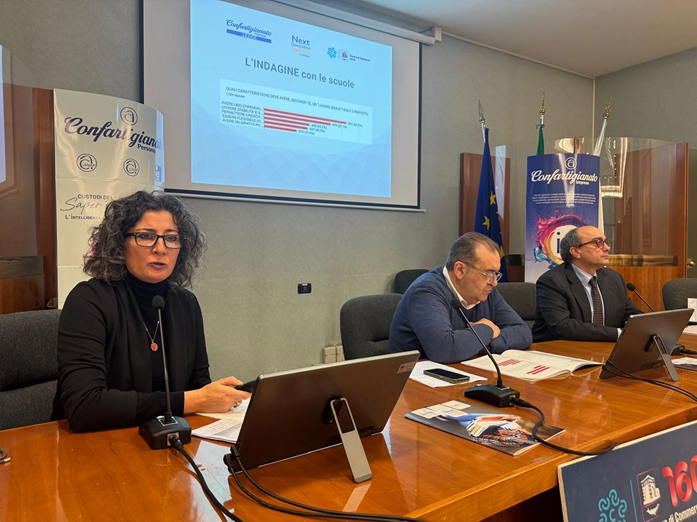 L’indagine — realizzata attraverso questionari rivolti ai ragazzi delle classi III, IV e V degli istituti superiori della provincia e a un campione di imprese salentine — ha coinvolto 1.004 studenti e 20 aziende appartenenti al mondo dell’artigianato, della manifattura e dell’edilizia.