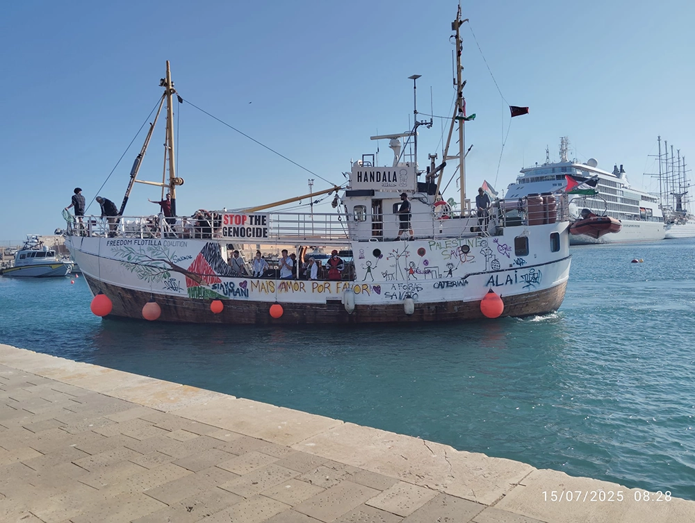 Handala, partita domenica scorsa da Siracusa, si tratterrà nel porto salentino fino a venerdì 18 luglio, data in cui, condizioni del mare permettendo, è prevista la ripartenza con destinazione Gaza.
