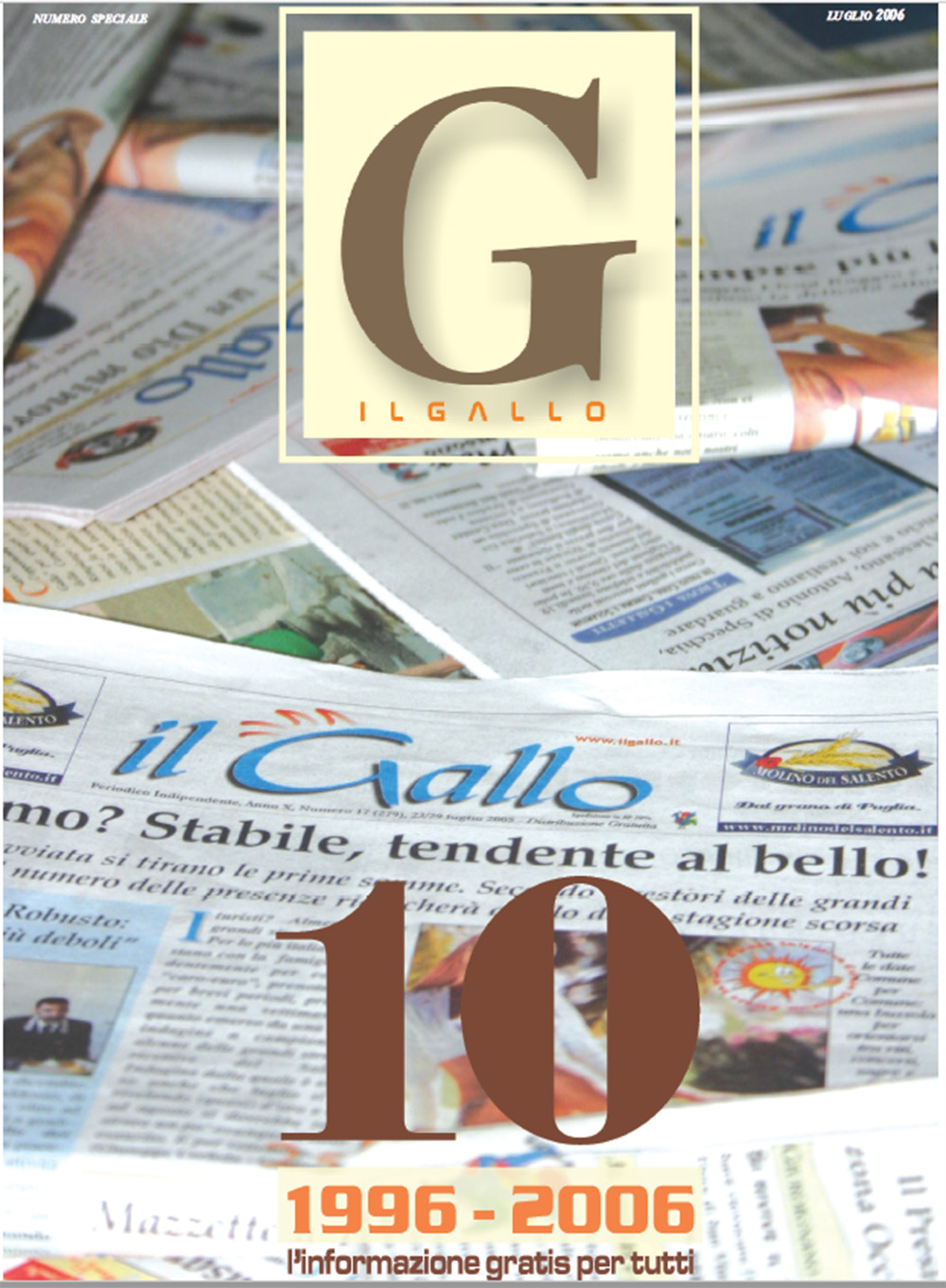 Era l’alba del 9 giugno del 1996, dopo una spasmodica ricerca ed una insperata tipografia (rotativa) che trovammo ad Andria, pronta a dare volto e inchiostro al nostro giornale, sfidammo le leggi dell’editoria dell’epoca (e di oggi) e facemmo conoscere al nostro Salento il nascituro: il vostro giornale, il Gallo.