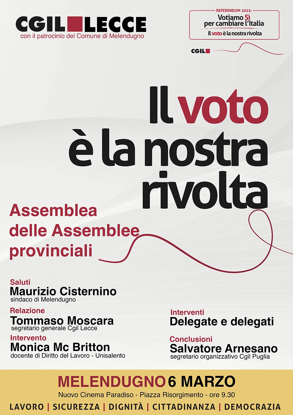Sarà l’occasione per avviare su tutto il territorio provinciale una grande discussione sul valore della democrazia e del voto, sui quattro referendum sul lavoro e sul referendum sulla cittadinanza.