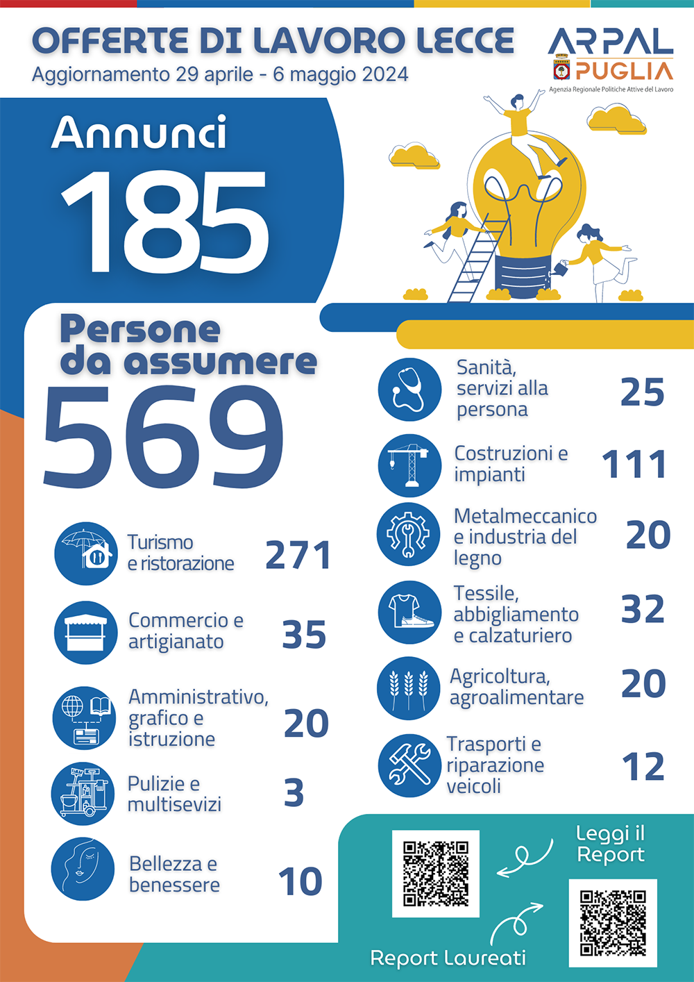 Il 14° Report settimanale di Arpal Puglia, Ambito Territoriale di Lecce. In provincia 569 posti di lavoro disponibili. Ecco come candidarsi