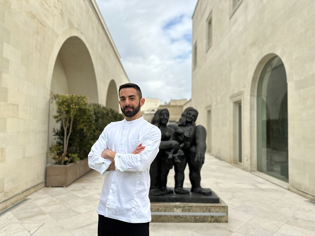 In questo scenario sospeso tra arte e natura, Antonio De Carlo trasforma ogni piatto in emozione. Oltre ai suoi Triddhi di Sapori Antichi, sorprendono creazioni come la tartare di ricciola con latte di mandorla, fichi secchi mandorlati e alloro, il Risotto Oro d’Ulivo con zucca, burro affumicato e polvere di olive nere e i dessert di raffinata libertà creativa, come il semifreddo al mustacciolo glassato e Alba Mediterranea, caprese al cioccolato bianco, mousse al limone e yuzu, croccante alla mandorla e gel al limone.