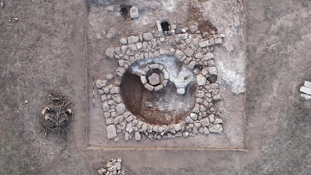 È stato individuato un imponente edificio in pietra a secco quadrangolare, di poco più di 5 metri di lato, all’interno del quale era collocata una fossa granaria ancora in parte sigillata e sul cui elemento di chiusura in pietra erano incisi dei graffiti, tra i quali anche iscrizioni in greco ora al vaglio degli epigrafisti.