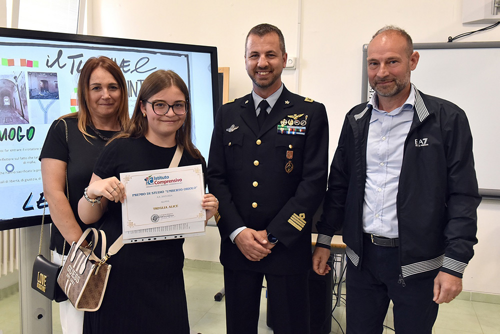 A seguire, il colonnello Vito Conserva ha consegnato una borsa di studio, intitolata ai due aviatori, allo studente classificatosi primo tra gli alunni delle terze classi della scuola secondaria di primo grado dell’istituto comprensivo di Corigliano – Melpignano, sede di Melpignano, secondo una graduatoria stilata sulla base della media dei voti conseguiti durante l’anno scolastico appena concluso. I