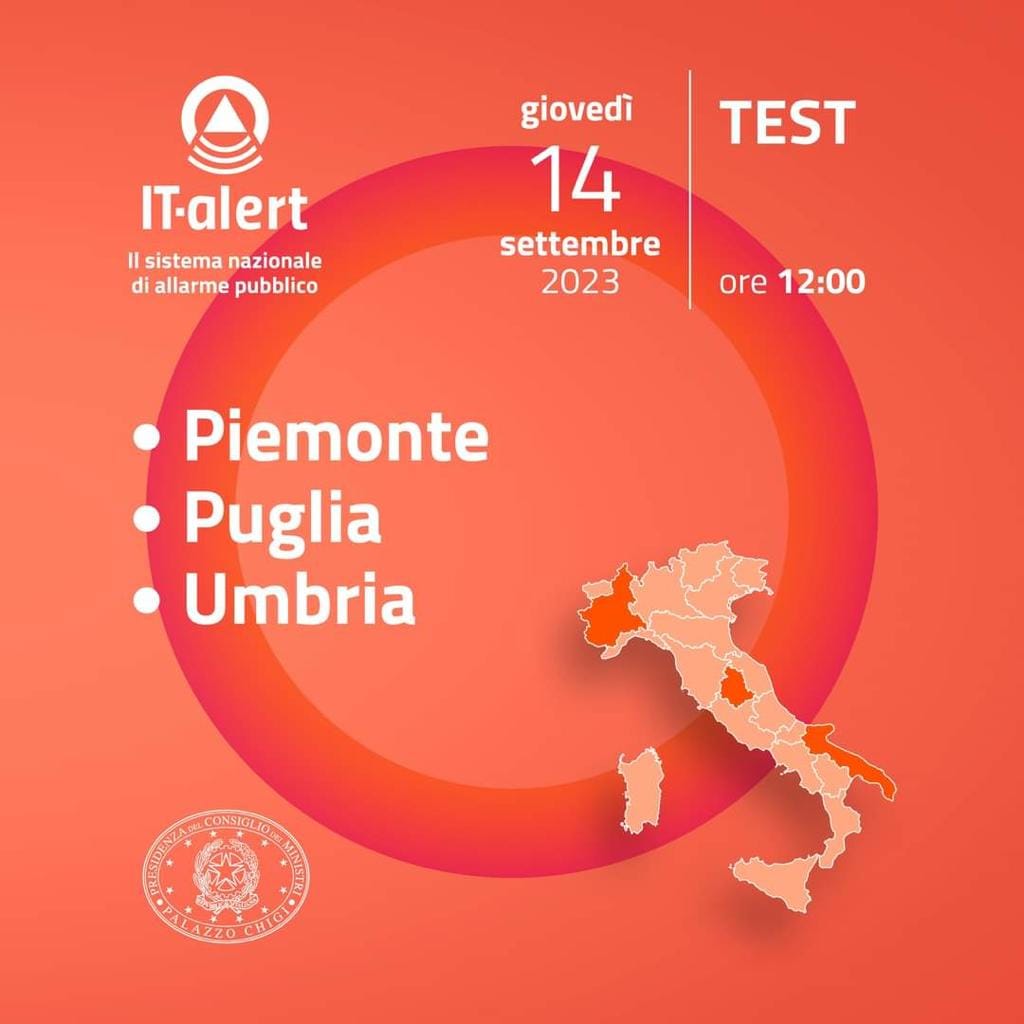 Domani a mezzogiorno i telefoni cellulari, in Puglia, saranno tutti raggiunti da un messaggio di test IT-alert, il nuovo sistema di allarme pubblico nazionale.