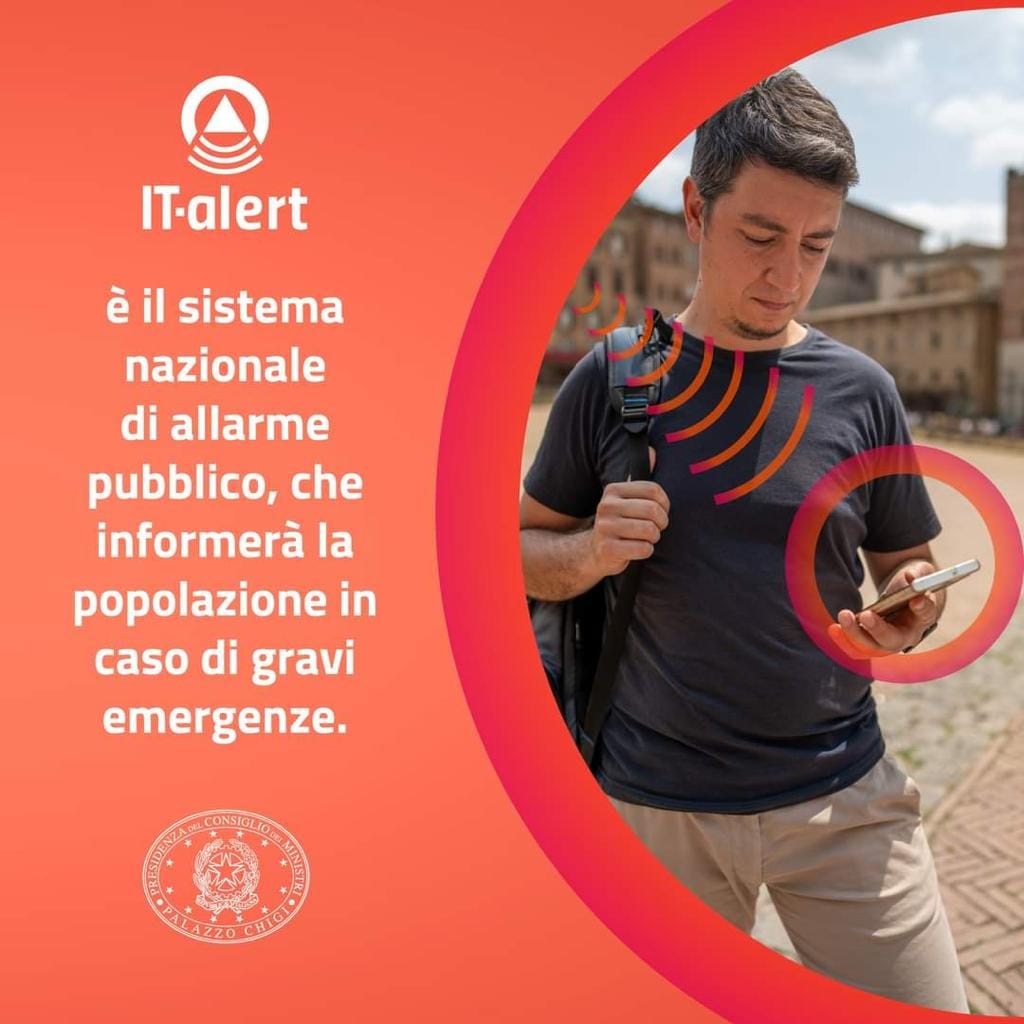 Tutti i dispositivi agganciati a celle di telefonia mobile nella nostra regione suoneranno contemporaneamente, emettendo un suono distintivo diverso da quello delle notifiche a cui siamo abituati.