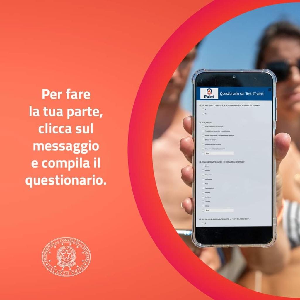 L’invito per tutti, che abbiano ricevuto correttamente il messaggio o meno, è di andare sul sito it-alert.it e rispondere al questionario: le risposte degli utenti infatti consentiranno di migliorare lo strumento.