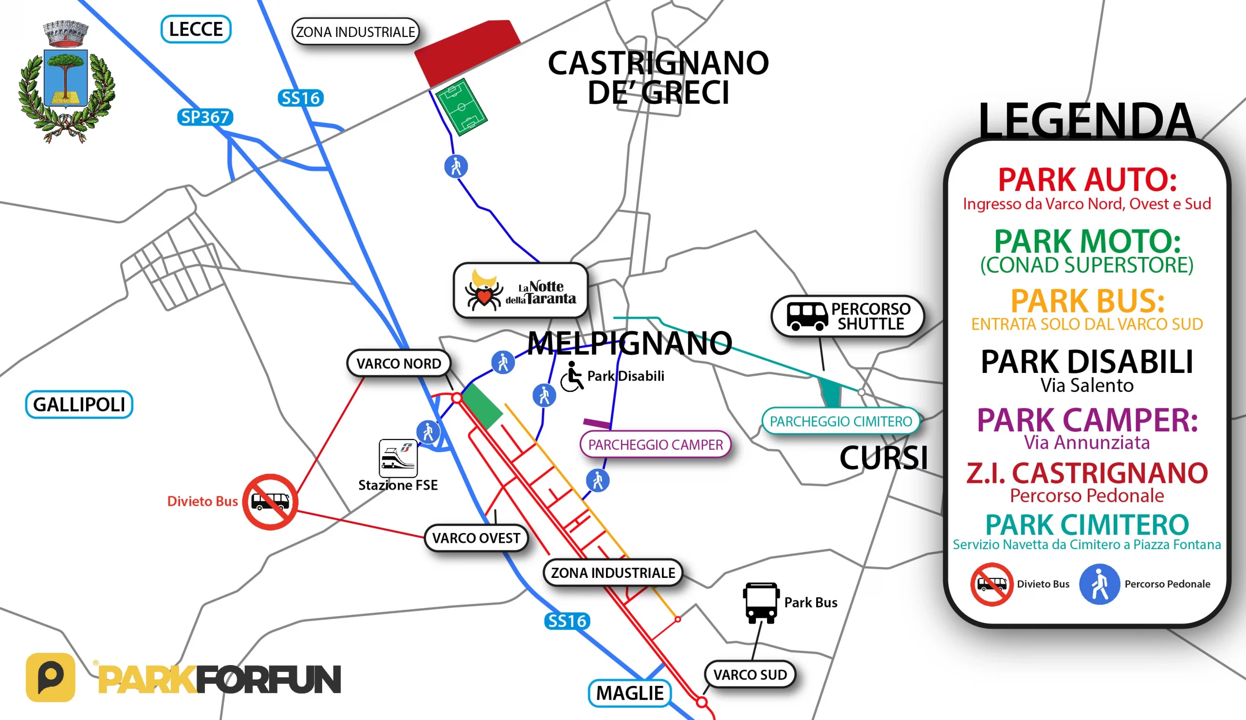 In AUTO grazie a Park For Fun qui per il 23 prove Concertone e qui per il 24 Concertone puoi prenotare il parcheggio a Melpignano