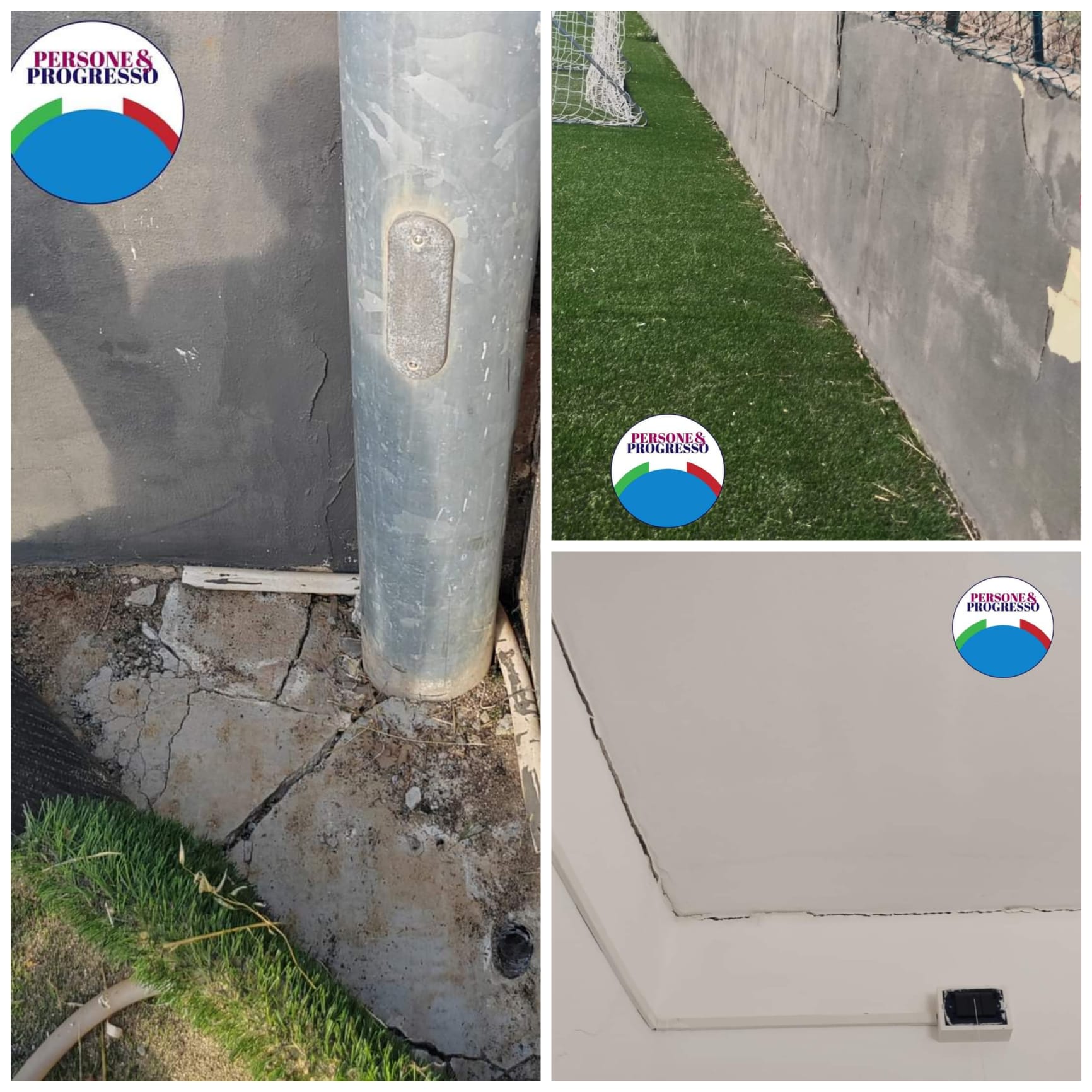 Ma non è tutto. A seguito del sopralluogo dei consiglieri comunali del gruppo “Persone e Progresso” sono emerse gravi situazioni di pericolo per tutti i fruitori degli impianti sportivi, a causa di mancate manutenzioni.