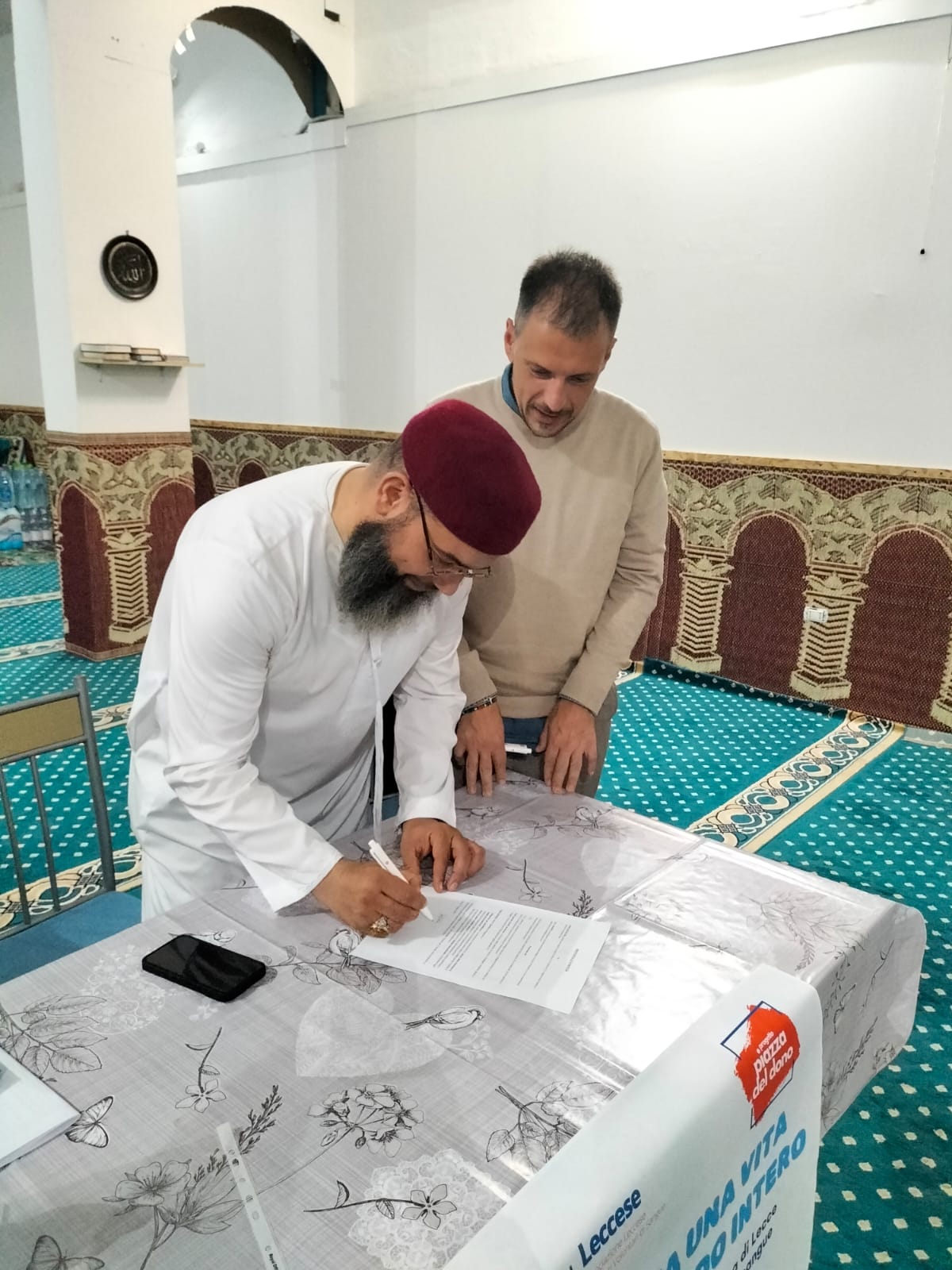 Il Presidente Provinciale Fidas Lecce, Emanuele Gatto, ha ringraziato Saif e preso l’impegno di facilitare la donazione di sangue di chi frequenta la moschea, valutando la possibilità di una periodica autoemoteca.
