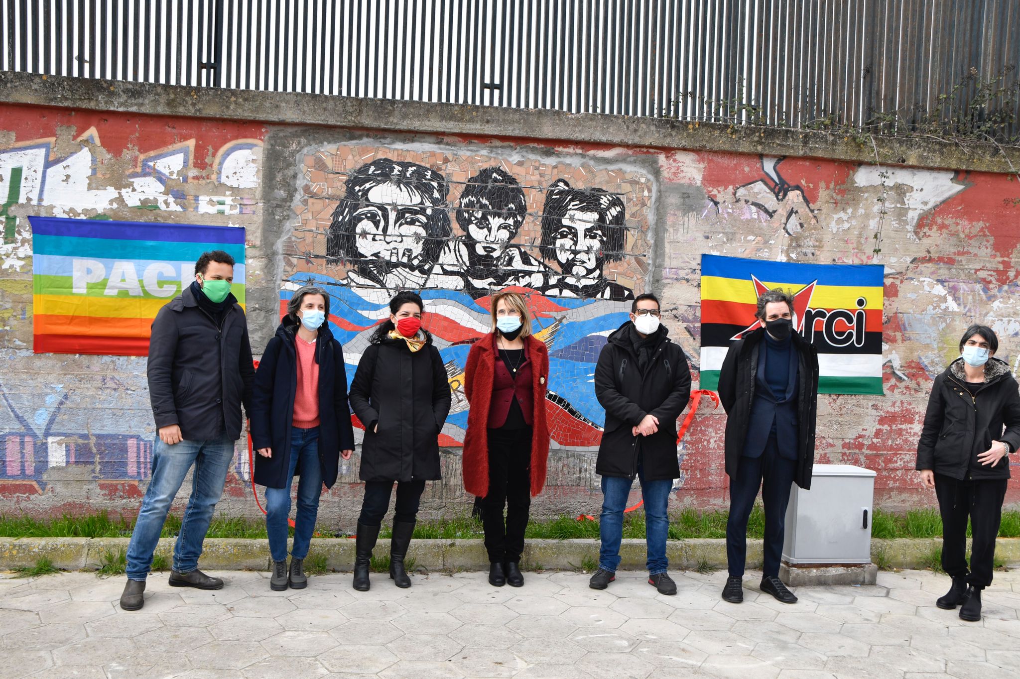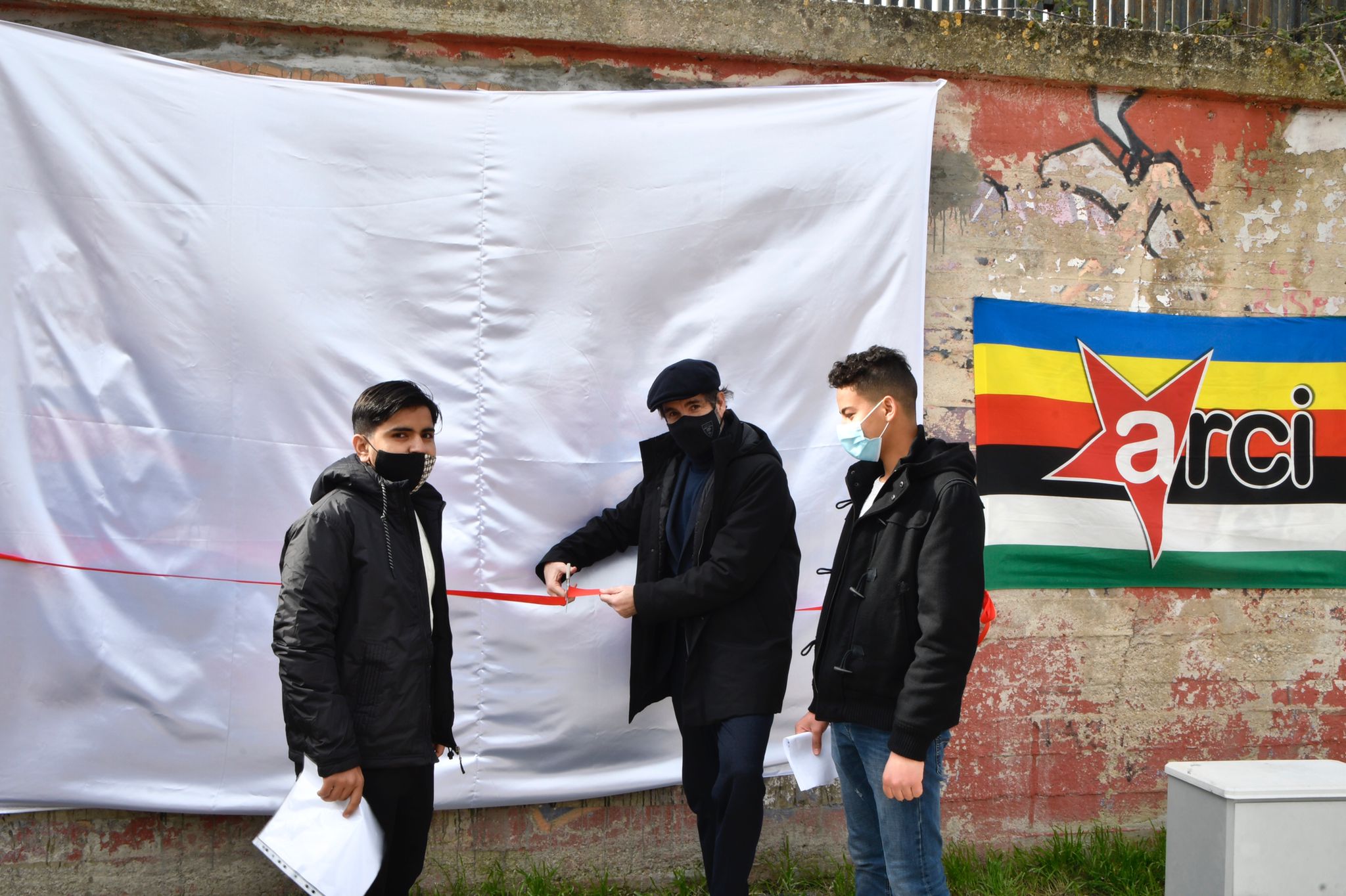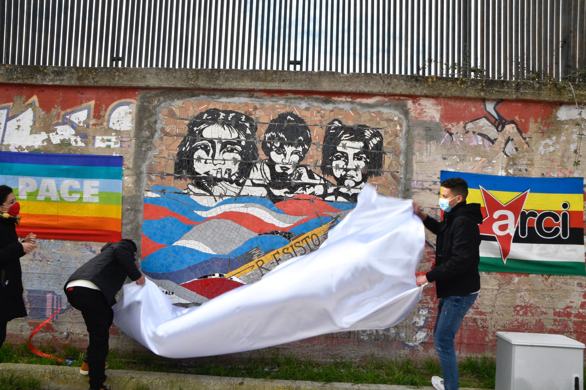 Alla cerimonia di scopertura, trasmessa live sulla pagina facebook di Arci Lecce, hanno partecipato Carlo Salvemini, sindaco di Lecce; Rita Miglietta, assessore di Lecce; Silvia Miglietta, assessora di Lecce; Anna Caputo, presidente Arci Lecce Cooperativa Sociale; Roberto Molentino, Responsabile Cultura di Arci Lecce; Alessandra Passeri, Rete Ferroviaria Italiana; Donatella Nicolardi, artista e docente del Laboratorio “R-Esisto”; Pina Leo, dell’amministrazione comunale di Patù.