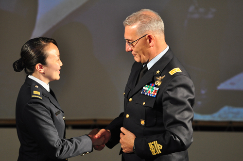 L’evento è stato presieduto dal generale Vitantonio Cormio, Vice Comandante delle Scuole dell’Aeronautica Militare/3ª Regione Aerea di Bari (CSAM/3^RA) che, come tradizione vuole, ha appuntato l’ambita “aquila turrita” sull’uniforme del primo classificato del corso; in questo caso, a ricevere il prestigioso riconoscimento è stata la prima donna di nazionalità straniera brevettata a Galatina, una giovane ufficiale di Singapore.
